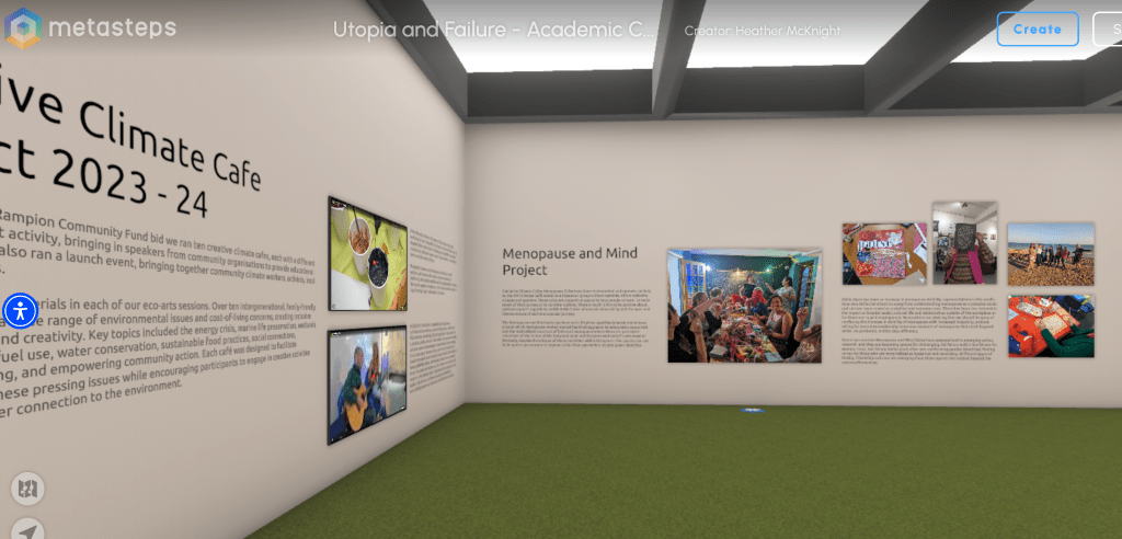 We contributed to the 3d Metasteps space of the Fail Again, Fail Better? network to re-evaluate the place of failure in utopia, addressing both utopian fictional narratives, and radical experiments in living and governing. You can find more information here: Fail Again, Fail Better? Recuperating Failure in Utopian Politics and Research. This has been part of an ongoing three year project where we have used the Menopause and Mind Care Cafe Structure as a case study at academic settings in Edinburgh University, University of Newcastle and King’s College London.
